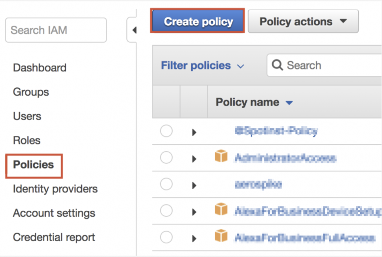 Click Policies in the side menu, and then Create Policy.